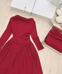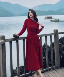 – Tên sản phẩm:VÁY LEN ĐỎ LỆCH VAI HÀNG QC LOẠI 1 TTM074 – H2T