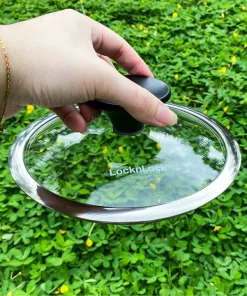 👉Vung nồi được làm bằng thủy tinh chịu nhiệt, trong suốt, giúp thấy được thực phẩm bên trong mà không cần mở vung.