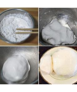 • Lưu ý: Khi đổ nước vào để nhồi bột thì bạn không nên đổ hết nước trong 1 lần, vì rất khó canh được lượng nước phù hợp, nếu đổ quá nhiều sẽ làm bột bị nhão, không dính được. Nước để nhồi bột phải là nước thật sôi mới có thể nhồi bột được nha.