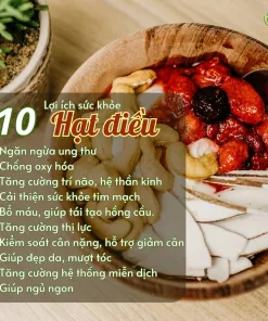 – Thành phần: 99% điều vỏ lụa loại I , 1% muối hạt iot.