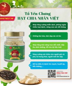 Yến hũ chưng Hạt Chia NHÂN VIỆT 30% Yến được chế biến từ nguyên liệu chính là 30% yến sào nguyên chất và đường phèn kết hợp cùng với Hạt Chia. Sự kết hợp hoàn hảo rất tốt cho sức khoẻ như: