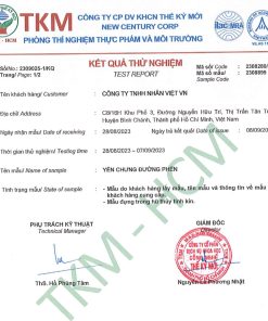 1.Thành phần: Nước tinh khiết, Yến Sào (30%), Đường phèn, Hạt sen,….