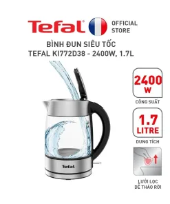Bình đun siêu tốc thủy tinh 1.7L Tefal KI772D38