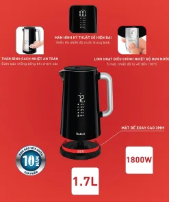 • Tự động ngắt điện khi nước sôi 100 độ, màn hình hiển thị kỹ thuật số, đèn báo nhiệt độ khi đun.