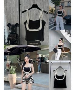 – Áo được thiết kế dưới dạng 2 dây bản to, ôm body với điểm nhấn là phần chữ được in trên dây áo