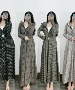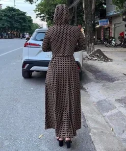 – Aó được thiết kế với dáng choàng dài, mũ trùm đầu giúp bảo vệ toàn diện cơ thể dưới tác hại của ánh nắng và cũng cực kì nhanh gọn, tiện lợi. Họa tiết được in trên áo sắc nét, nổi bật. Điểm độc đáo của chiếc áo là phần trên là dáng áo croptop 2 lớp, phần dưới là váy xòe có xẻ trước giúp người mặc thoải mái di chuyển