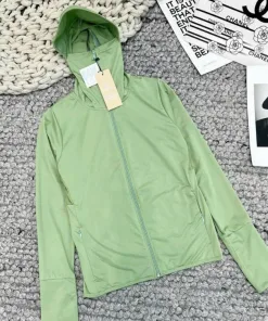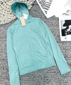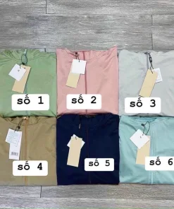Dáng: áo ngắn, dài tay, xỏ ngón ở cổ tay áo, có mũ và khóa mũ.