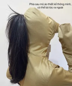 Thiết kế tay áo dài, có mũ trùm đầu vành cứng tăng độ che phủ, làm giảm thiểu tối đa tác hại của ánh nắng mặt trời.