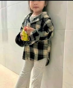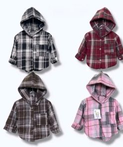– Thiết kế áo sơ mi kẻ phối mũ rộng trùm đầu, thời trang, khỏe khoắn phù hợp cho cả bé trai và bé gái