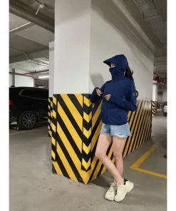 Thiết kế tay áo dài, có mũ trùm đầu tang độ che phủ, làm giảm thiểu tối đa tác hại của ánh nắng mặt trời.