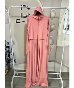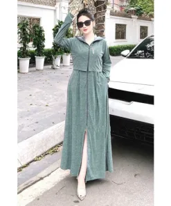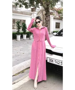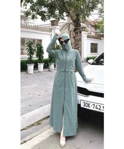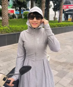 – Aó được thiết kế dáng 2 tầng, với phần trên là áo croptop 2 lớp, có mũ trùm đầu và phần tay dài trùm kín mu bàn tay. Phần dưới 1 lớp với phần tà dáng váy giúp tăng khả năng chống nắng và bảo vệ toàn diện cơ thể dưới ánh nắng mặt trời
