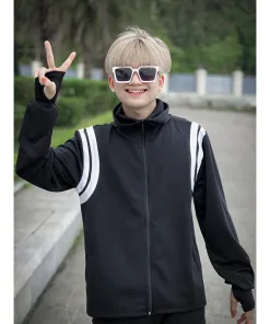 Tay áo dài với độ che phủ cao kết hợp với mũ trùm đầu tăng cường khả năng chống nắng.
