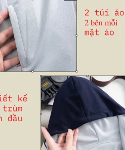 Túi áo khóa tiện lượi được may cả 2 mặt của áo. chỉ cần thao tác nhẹ nhàng là lọn mặt trong ra ngoài, các anh đã có ngay một chiếc áo nắng với một tông màu khác biệt