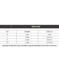 * Bảng size chỉ mang tính chất tham khảo, tùy thuộc vào số đo cơ thể và chất liệu vải khác nhau sẽ có sự chênh lệch nhất định.