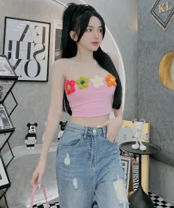 - Tên sản phẩm: Áo Croptop 2 Dây Đính Hoa – Lê Phương Boutique