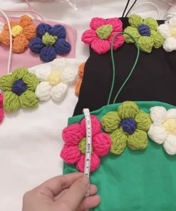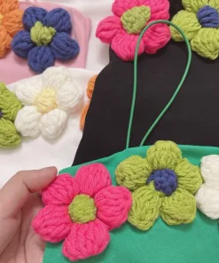 - Chất áo là vải thun borip, hoa đính trên áo là len.