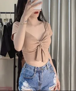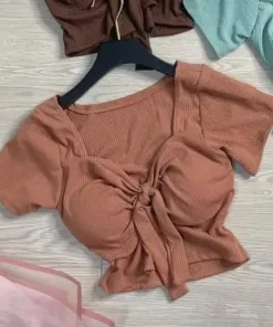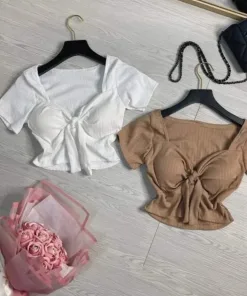 -Tên Sản phẩm: Áo croptop có đem mút ngực thắt nơ