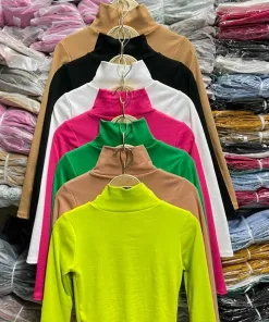 - Kiểu dáng tay dài, cổ lọ cao lịch sự.
