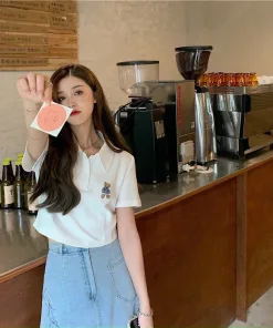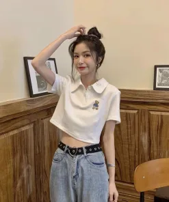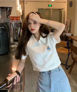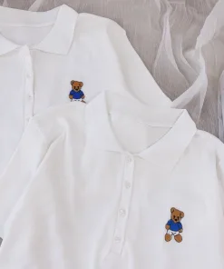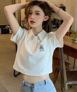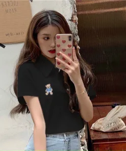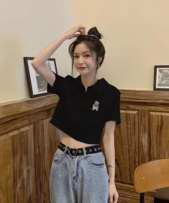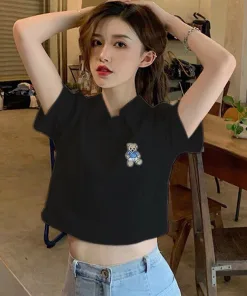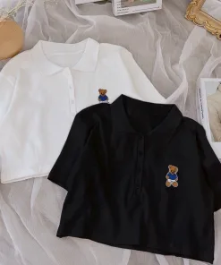 Áo Croptop Họa Tiết gấu kiểu dáng áo dáng croptop thêu gấu xinh. Áo có màu đen, trắng. Chất liệu vải rip loại đẹp dày dặn mềm mịn co giãn tốt.