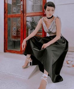 - Chất liệu: Satin lụa phối dây eo điểm nhấn độc đáo