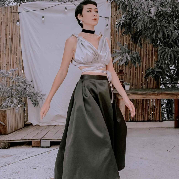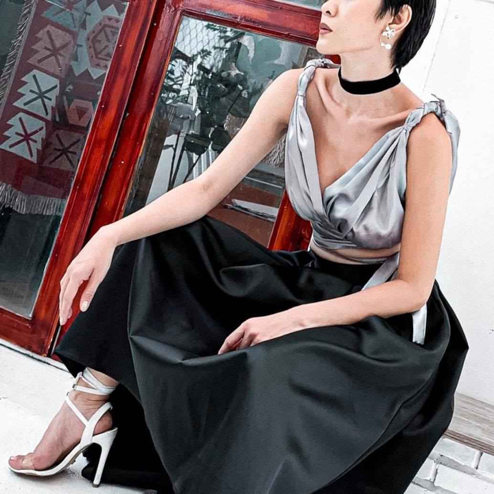 - Áo croptop Mushroom Lee với chất liệu satin lụa phối dây eo điểm nhấn độc đáo. Phối cùng váy dạ hội hoặc chân váy xòe và quần short. Phù hợp đi chơi đi làm, đi tiệc phá cách,…