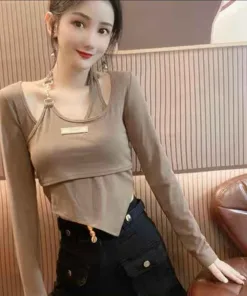 - Tên sản phẩm: Áo Croptop Tay Dài Tà Nhọn – Lê Phương Boutique