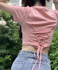 – Áo thun croptop dễ dàng kết hợp với các item khác như quần jean, quần ống suông, quần short hay chân váy .