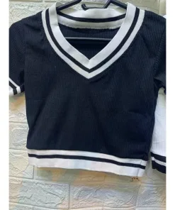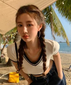 ÁO CROTOP CỔ TIM PHỐI VIỀN ÔM BODY CHẤT THUN GÂN SA177 – SAM FREESIZE < 51KG