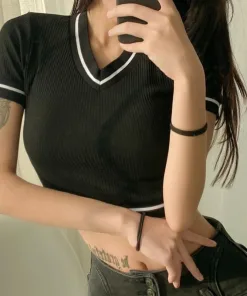 – Áo thun croptop dễ dàng kết hợp với các item khác như quần jean, quần ống suông, quần short hay chân váy .