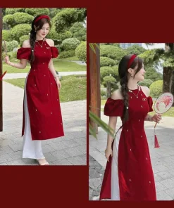 Chào mừng đến với sản phẩm mới Áo dài cách tân cổ yếm đính phụ kiện – chiếc áo dài cách tân đầy sang trọng và quyến rũ. Với chất liệu tuyết nhung cao cấp, áo dài này mang lại sự mềm mịn và thoải mái cho người mặc, giúp bạn tự tin hơn trong những bữa tiệc đầy thanh lịch hoặc các sự kiện quan trọng trong cuộc sống như đám cưới hay ra mắt gia đình người yêu.