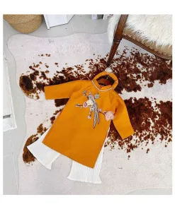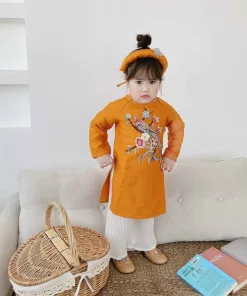 - Áo dài gấm siêu xinh hót hit với chất liệu gấm, gồm 3 chi tiết mấn cài đầu, quần ống sớ, áo gấm thêu. Size cho bé từ 10 kg đến 25 kg.