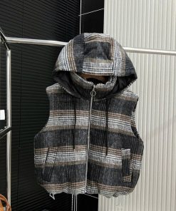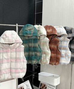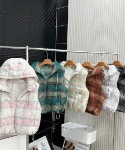 🔹 Thiết kế: gile có mũ, form trẻ trung – phối áo thun, len, hoodie đều hợp