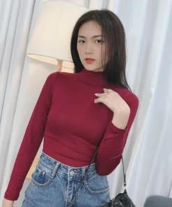 - Kiểu dáng tay dài, cổ lọ cao 3 phân lịch sự.