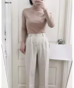 - Dáng sáo len dài tay có cổ cao 3cm giữ ấm tốt.
