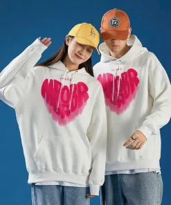 Tên sản phẩm: ÁO HOODIE CẶP ĐÔI COUPLE NAM NỮ IN HÌNH TRÁI TIM HỒNG MBO DỄ THƯƠNG FORM RỘNG TP81 – GOLDEN DREAM
