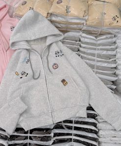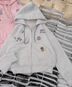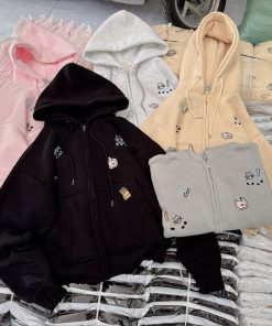 Thiết kế: Hoodie form rộng, có mũ, dây rút, khóa kéo