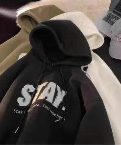 Áo Hoodie NỈ Dệt Có In Chữ STAY. Siêu Đẹp Form Rộng Cá Tính Có Nón Trùm Đầu Rộng Áo Đẹp Hàng Hot Trend-HTM FASHION