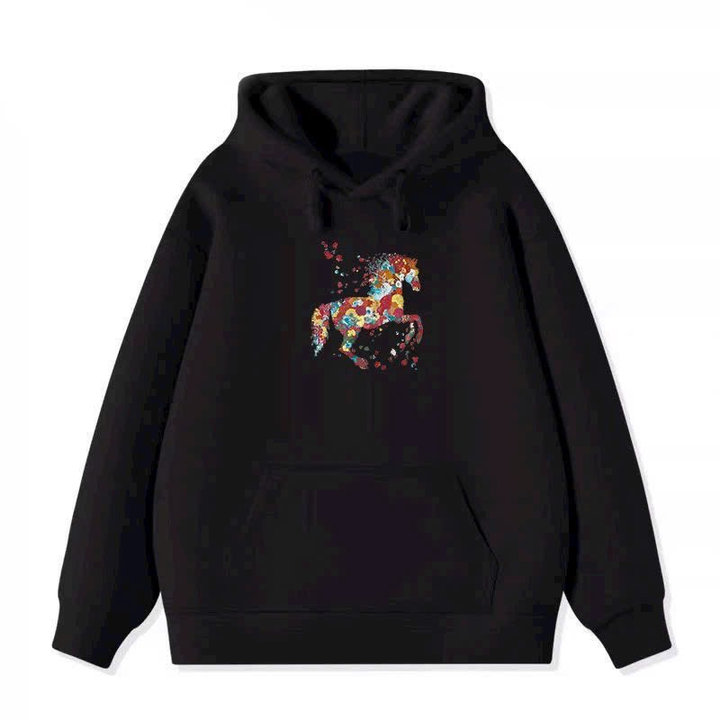 Tên sản phẩm: ÁO HOODIE NỈ LÓT BÔNG MỀM MỊN IN NỔI HÌNH NGỰA PHI UNISEX NAM NỮ, MŨ 2 LỚP PHỐI TÚI BỤNG TP30