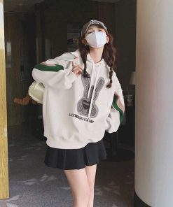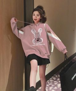 Áo Hoodie Nỉ Nữ Phối Với Dáng Form Nhỏ Gọn Đẹp Có Kèm Mũ Siêu Đáng Yêu Có In Hình Con Thỏ Cute Hàng Hot Trend-HTM FASHION