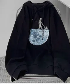 Áo Hoodie Nỉ Phối Dáng Form Rộng Áo In Mặt Trăng Bao Sắc Nét Unisex Nam Nữ Chất Liệu Vải Áo dày Dặn Có Nón Trùm Đầu Tiện Lợi Hàng Hot Trend-HTM FASHION