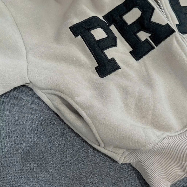 Điểm nổi bật của áo là chữ PRFC in/bord nổi bật phía trước, phong cách streetwear – sporty cá tính, dễ phối đồ. Thiết kế khóa kéo tiện lợi, có thể mặc như áo khoác ngoài hoặc kéo kín như hoodie thông thường.