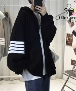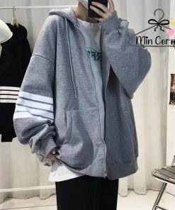 Áo Hoodie Nữ Form Rộng Mũ bốn vạch tay MAK95 – MIN CORNER