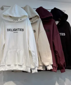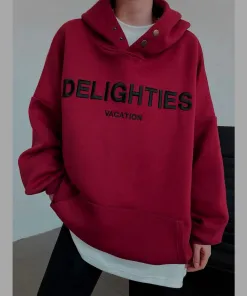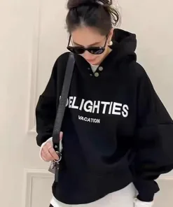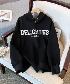 Tên sản phẩm: ÁO HOODIE NỮ THÊU CHỮ DELIGHT PHỐI 2 NÚT CỔ TP 587 – GOLDEN DREAM