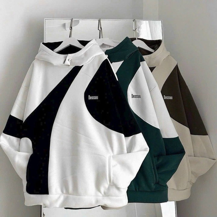 Áo hoodie phối màu như hình, chất nỉ dày dặn nón lót 2 lớp vải chính có nút bấm, logo thêu