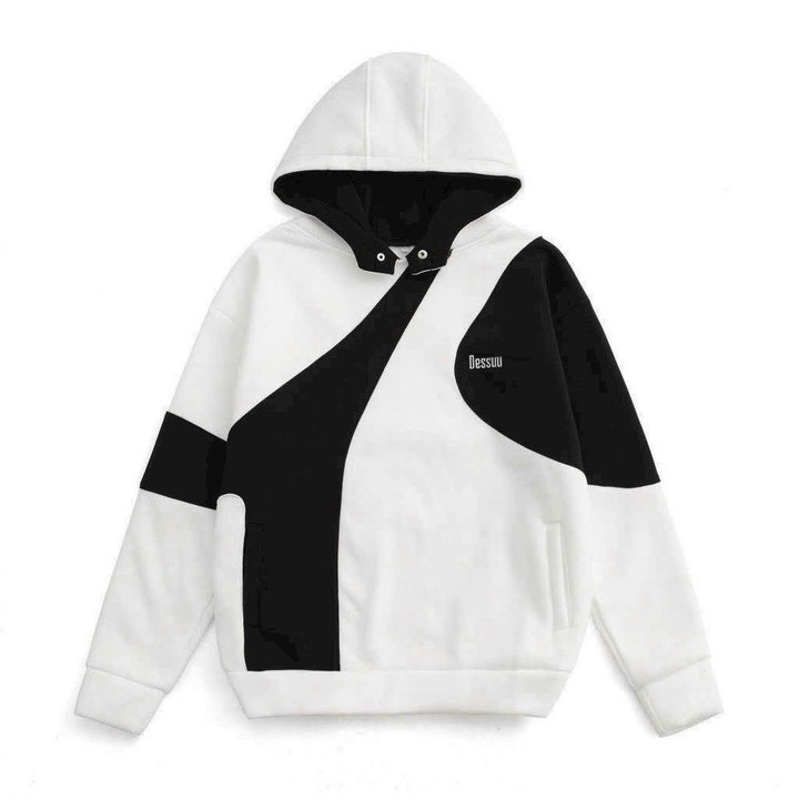 Áo Hoodie Phối Màu Logo Thêu Dessuu Akh031 Nỉ Dày Dặn Nón Lót 2 Lớp Vải Chính Có Nút Bấm