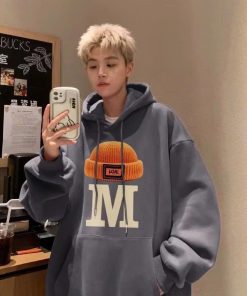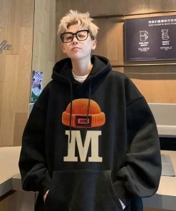 Tên sản phẩm: ÁO HOODIE PHỐI TÚI BỤNG FORM RỘNG UNISEX IN CHỮ M ĐỘI MŨ SẮC NÉT ĐẸP NHƯ HÌNH TP77 – GOLDEN DREAM