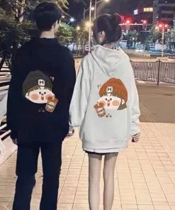 Tên sản phẩm: ÁO HOODIE UNISEX NAM NỮ IN HÌNH CẬU BÉ CÔ BÉ TRÀ SỮA VẢI NỈ NGOẠI COUPLE TP78 – PHƯƠNG STORE