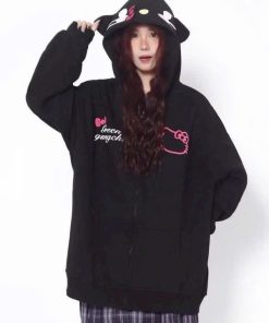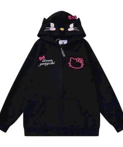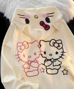 Áo Hoodie Zip Khoác Nỉ Hello Kitty Có Nơ Mũ Tay Bồng Nhiều Màu Form Rộng Unisex Nam Nữ Xinh Xắn – TP900