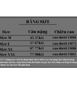 – Size XXL: 77 – 90kg cao dưới 1m85