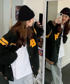 ÁO KHOÁC BOMBER NỈ LB NAM NỮ FORRM RỘNG UNISEX SA45 – SAM FREESIZE <65 KG